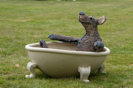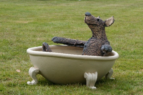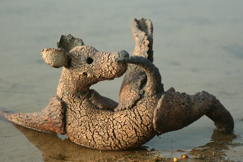 In haar werkplaats bij de duinen ontstaan nieuwe prehistorische vondsten, meer dan levensgrote honden en mensachtigen, elk met hun eigen karakteristieke uitstraling.